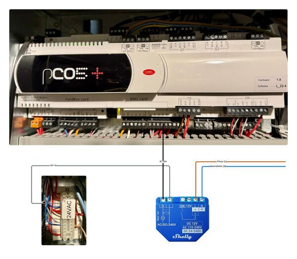 Diese Anleitung beschreibt, wie ein Shelly-Relais verwendet werden kann, um den Sommerbetrieb einer Dimplex Wärmepumpe mit pCO5+ Steuerung über den Digitaleingang ID4 (N1/J5-ID4)